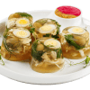 Рулет из скумбрии с лимонной цедрой слабого посола, рулет из скумбрии с начинкой из пряной зелени, маринованный красный лук, оливки, маслины, лимон, соус песто.