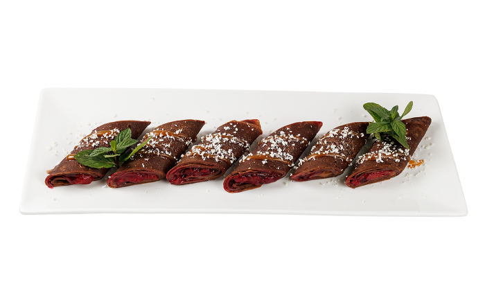 Блины с начинкой из вишневого соуса с кремом на основе сметаны и сливок. Оформление заказа за 3 дня.