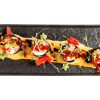 Креветка темпура,в соусе ким-чи ,с рукколой и цедрой лайма
