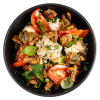 Микс салатной зелени, заправленный соусом sweet-chili, хрустящие шампиньоны с фирменной заправкой , мясистые томаты и моцарелла Буффало