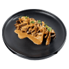 Тартар из тунца, с добавлением печеного перца, с заправкой из лукового Айоли, чипсами из пармезана