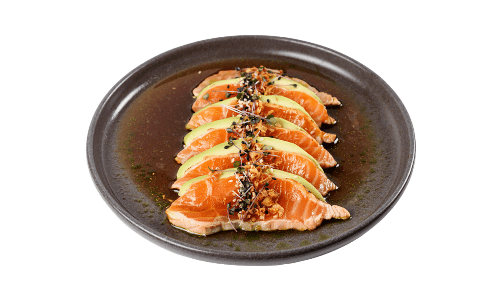 Свеженарезанный лосось с авокадо и соусом на основе кунжутного масла